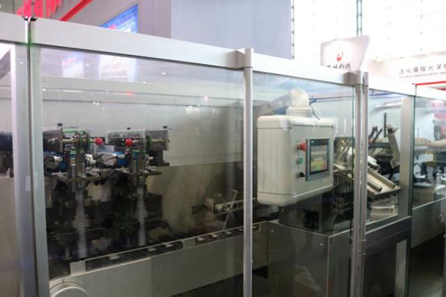 “在不改變原有輸送線穩(wěn)定線速度的基礎上,DHL500高速泡罩裝盒一體機實現了單軌至雙軌產量的倍增,實現了泡罩裝盒包裝產量的大化。”工作人員介紹,這款設備有很多創(chuàng)新點,比如實現一體機內外包分體組合式設計,解決了國內使用客戶一體機內外包。